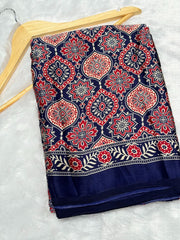 Blue Ajrakh Printed Soft Modal Silk Natural Print Saree P2