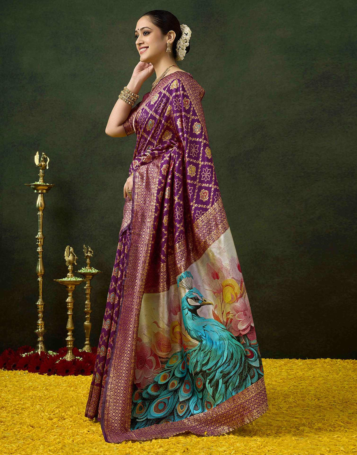 Dark Purple Silk Woven Banarasi Saree – Serene Wear index