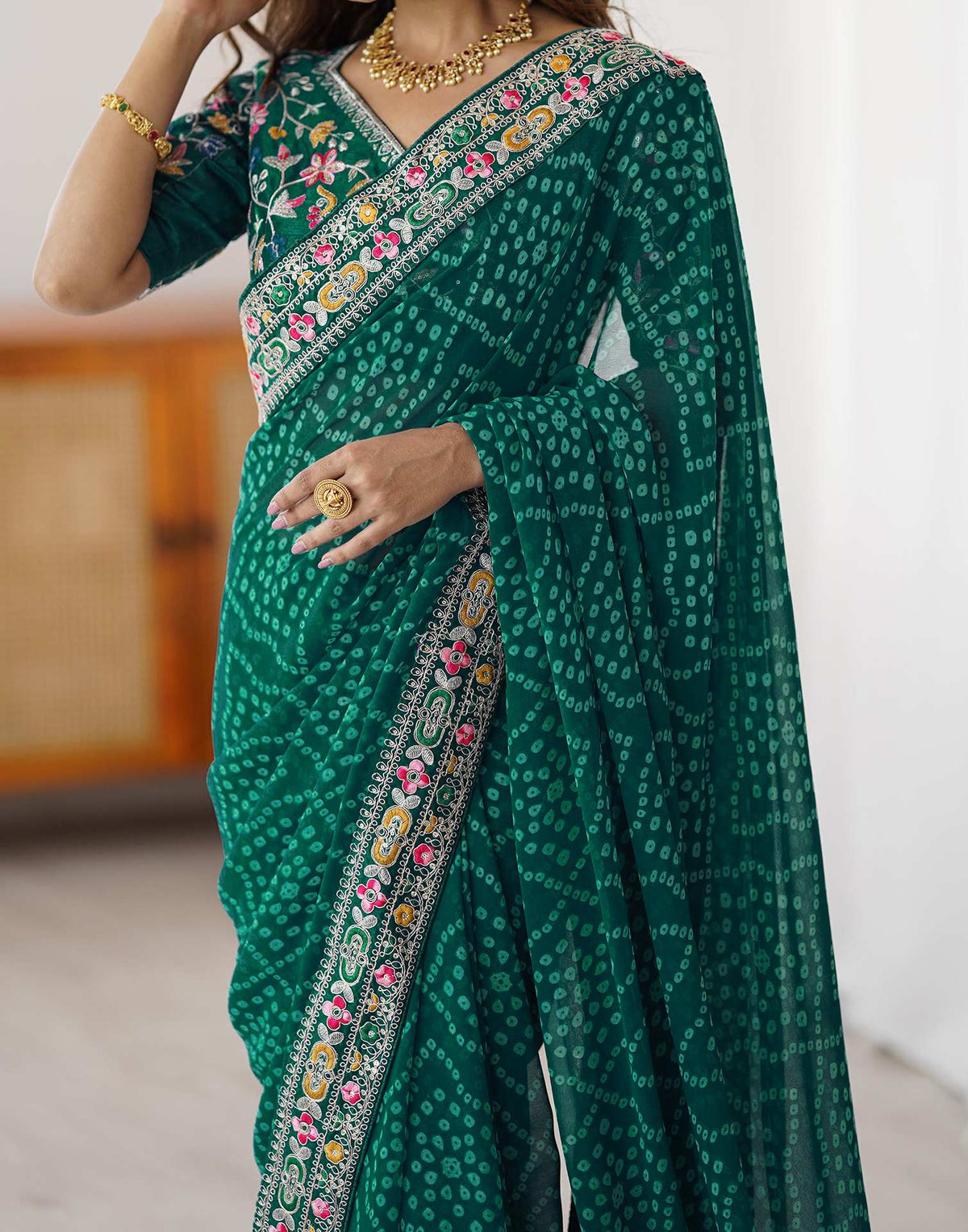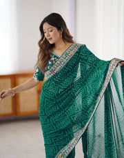 Green Georgette Printed Bandhani Saree – Serene Wear index