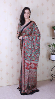 Luxurious Maroon Ajrakh Printed Soft Modal Silk Natural Print Saree P2