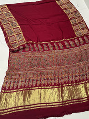 Maroon Ajrakh Gharchola Border Hand Block Pure Modal Silk Saree With F – Serene Wear index