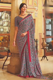 Maroon New Ajrakh Printed Satin Crepe Saree