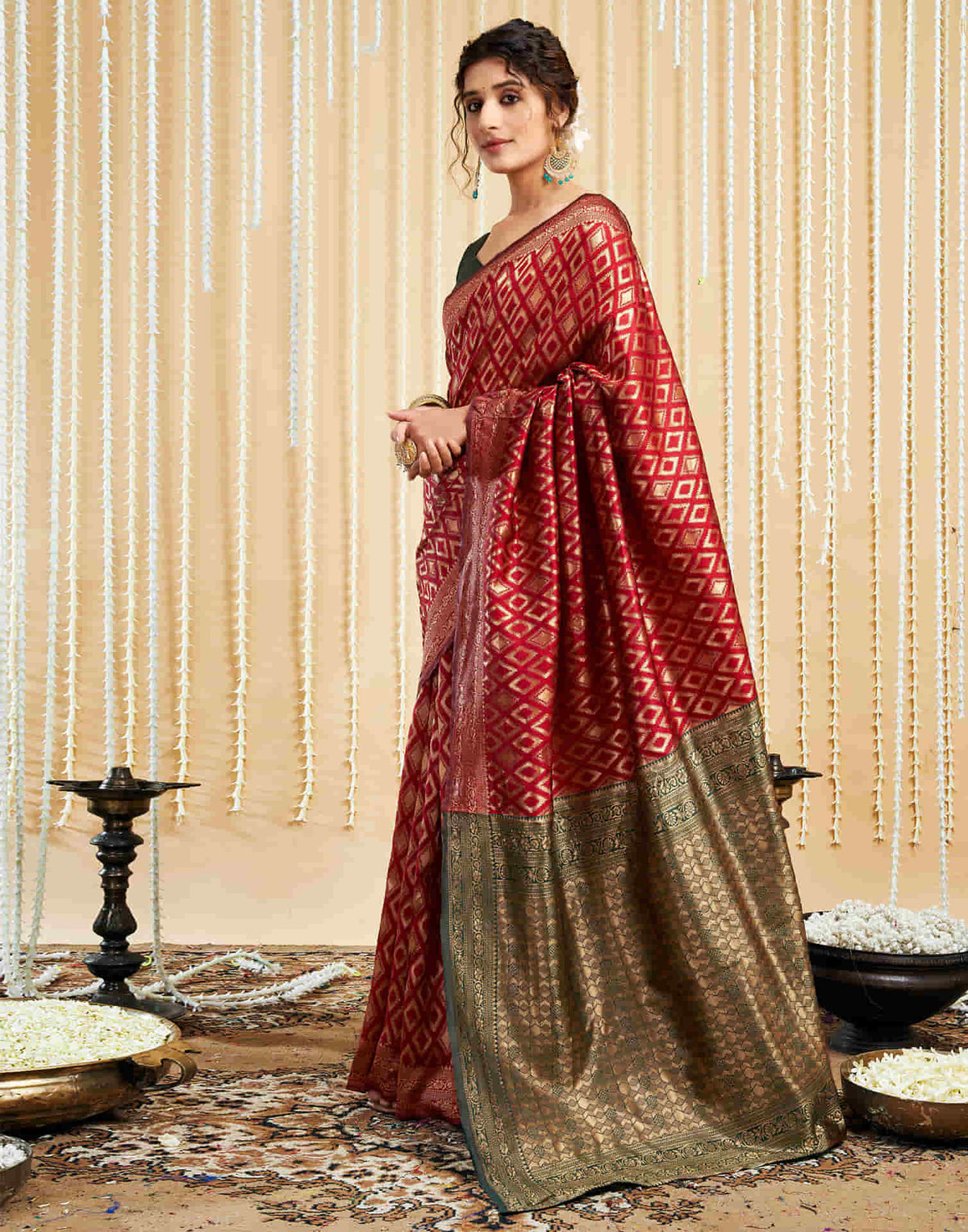 Maroon Silk Woven Banarasi Saree – Serene Wear index