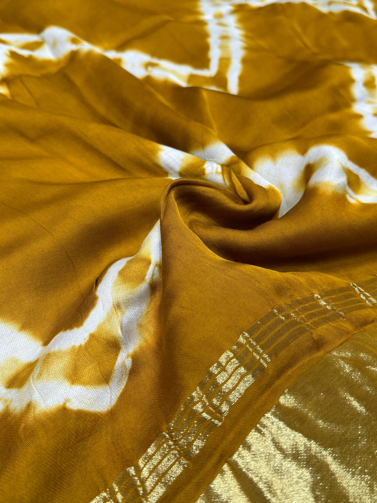 Musterd Leriya Modal Silk Zari Pallu Saree And Tie Dye Ajrakh