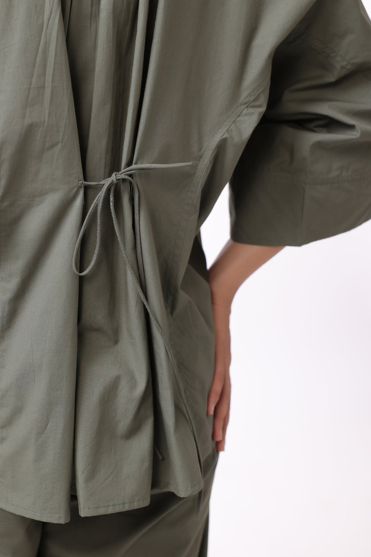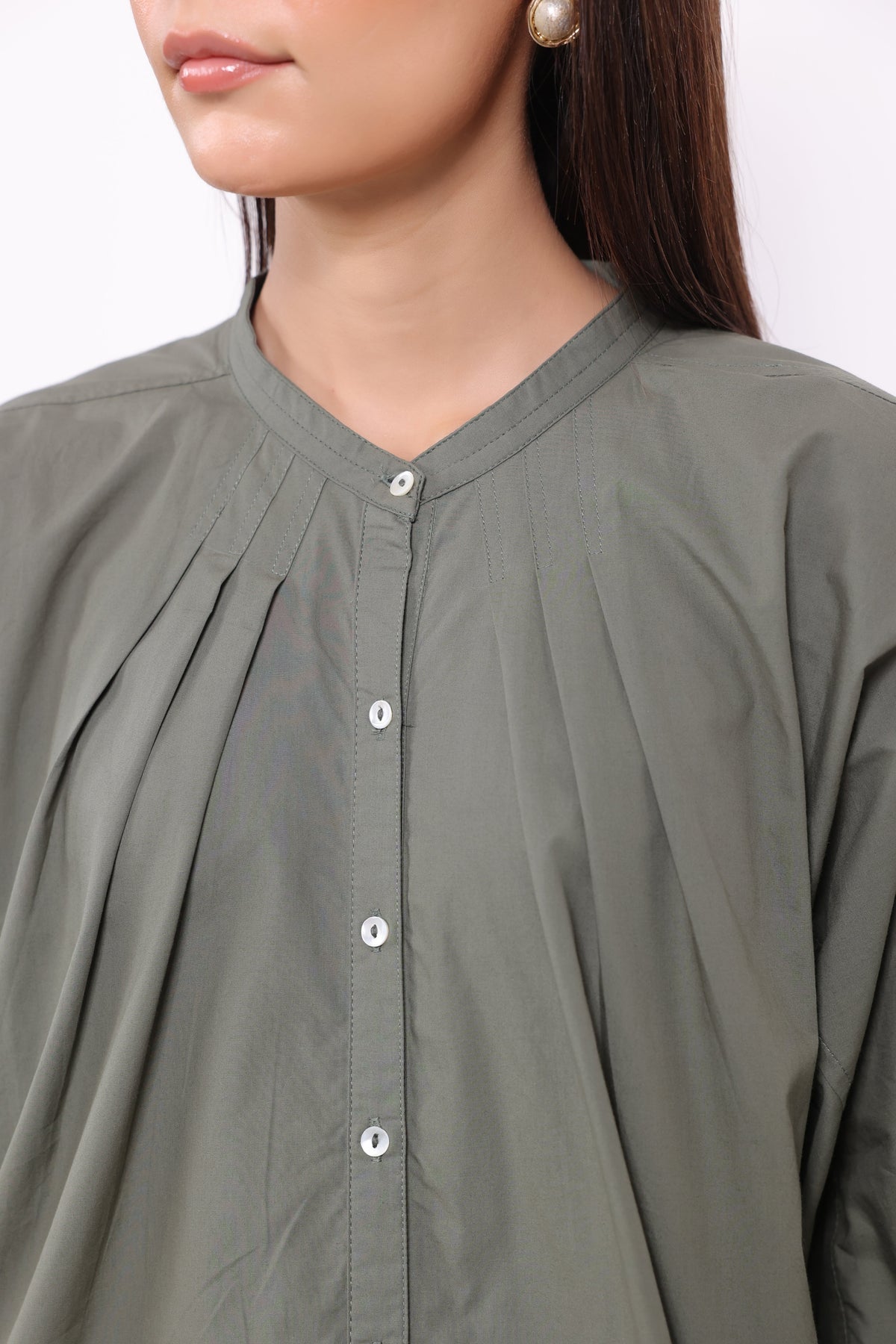 MUUN Women Green Solid Cotton Top - S / Cotton / Olive Green