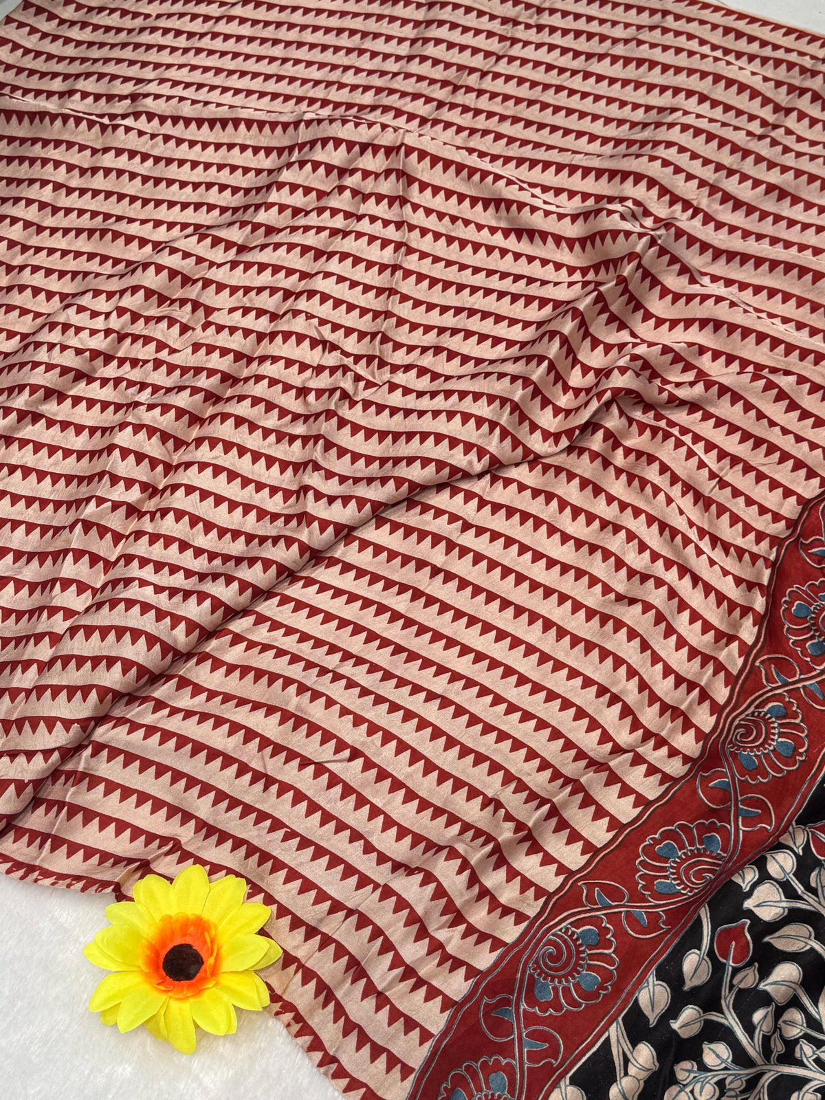 Black And Cream Ajrakh With Kalmkari Pallu Saree – Perfume Clone index